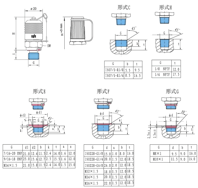 | 測(cè)壓接頭螺紋G |
